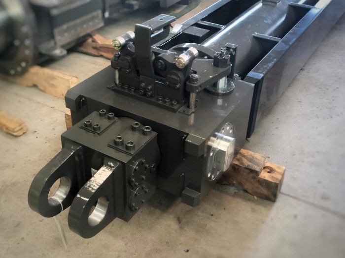 雙側(cè)銷插銷機(jī)構(gòu)伸縮油缸(600V8)在特力液壓公司完成試制,并經(jīng)測試合格,缸銷與臂銷運(yùn)行正常,動作靈活,各項(xiàng)指標(biāo)符合設(shè)計(jì)要求,標(biāo)志著新一代雙側(cè)銷插銷機(jī)構(gòu)成功下線。